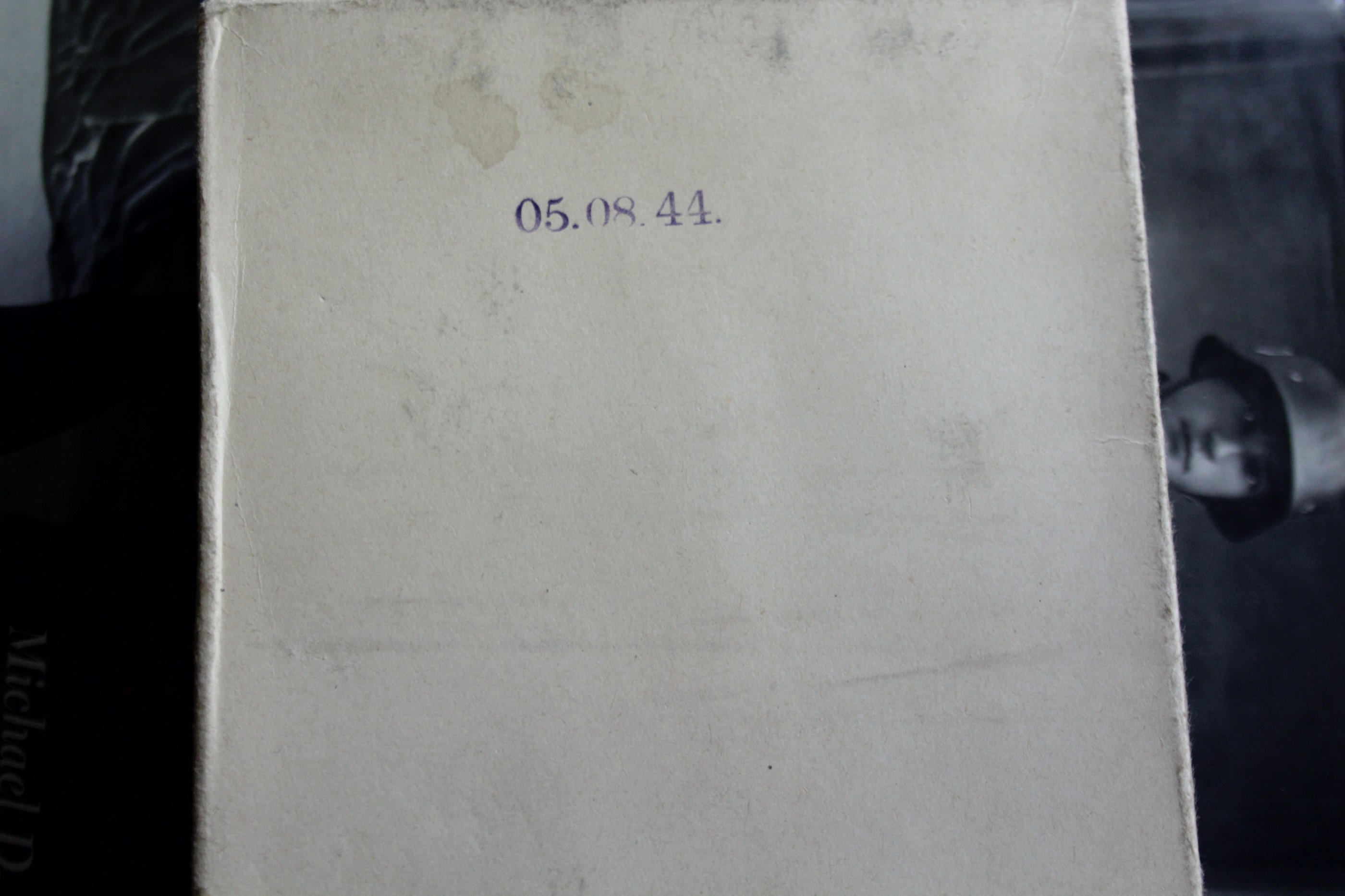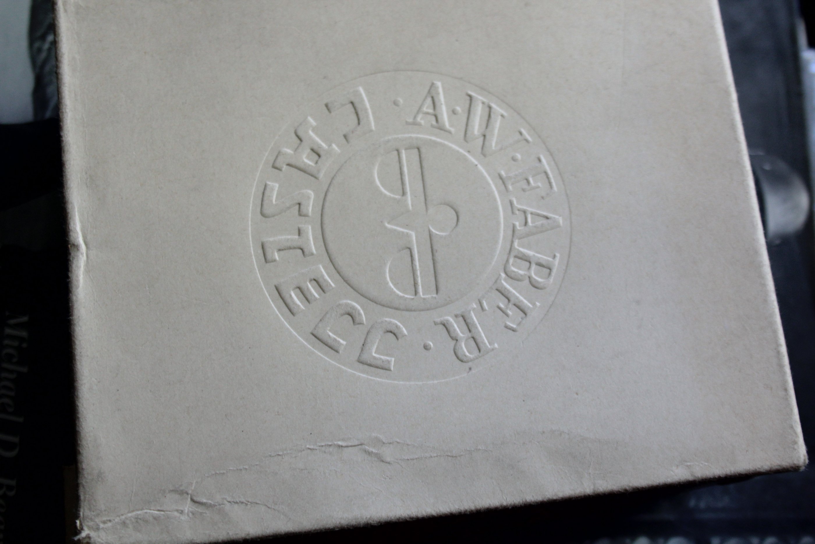 Jäänud üksik Faberi karp koos 12 punase pliiatsiga ja suur 1944 markeeritud kartong karp mille sees nad olid.