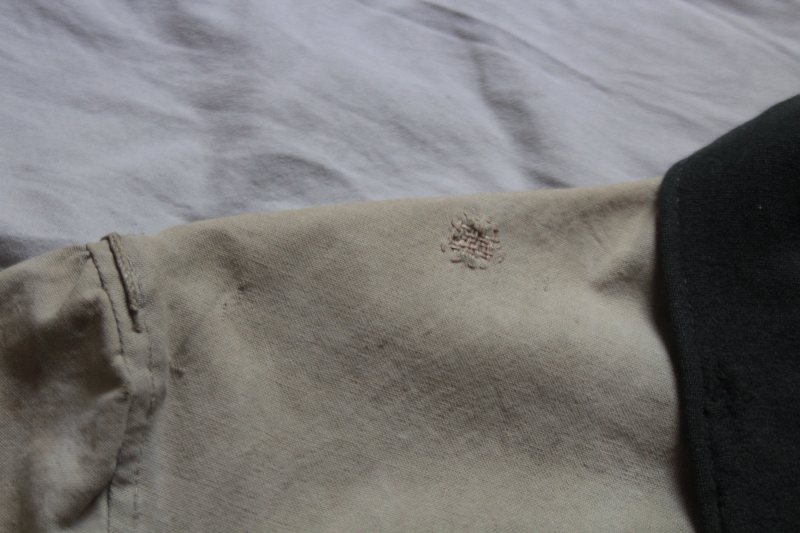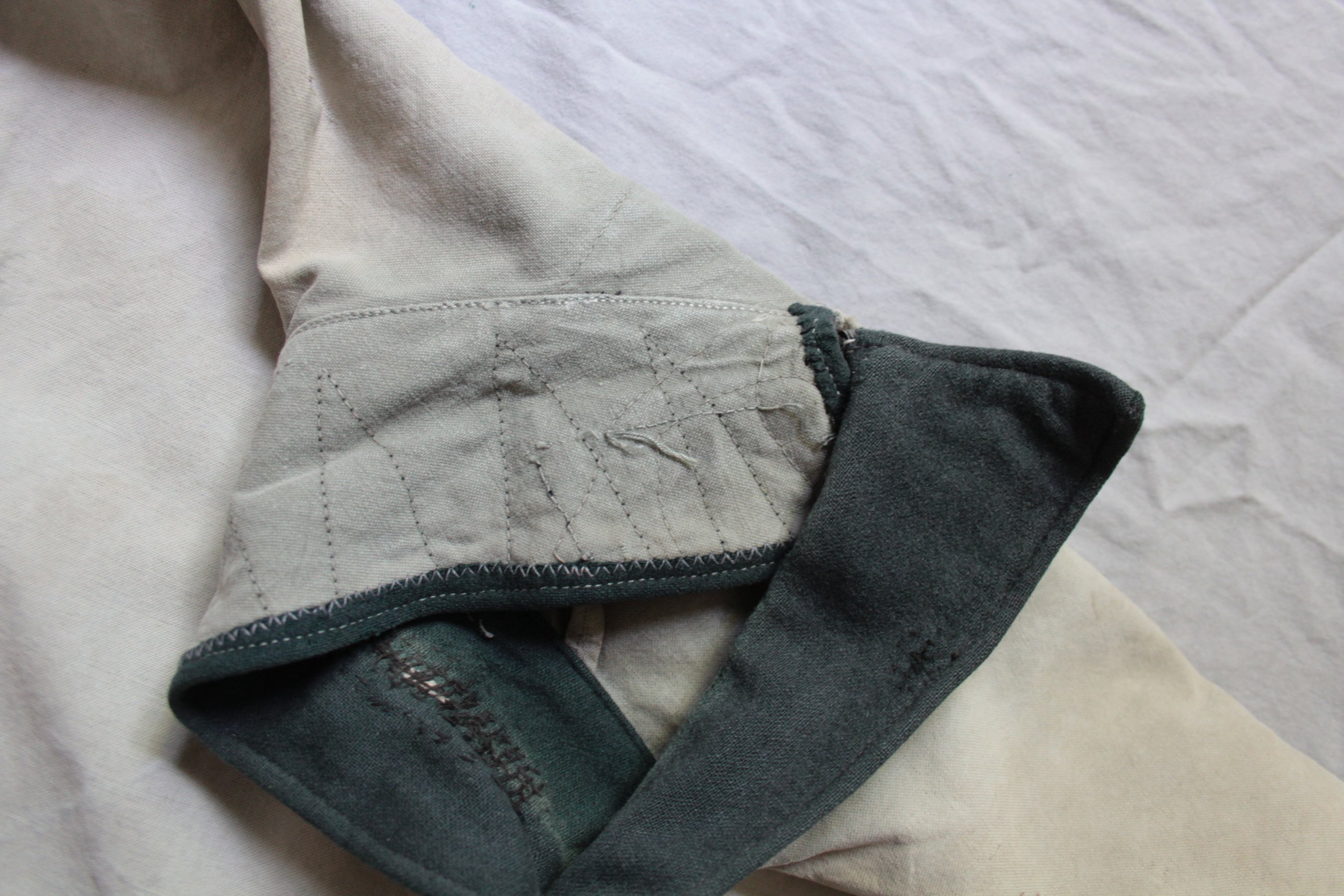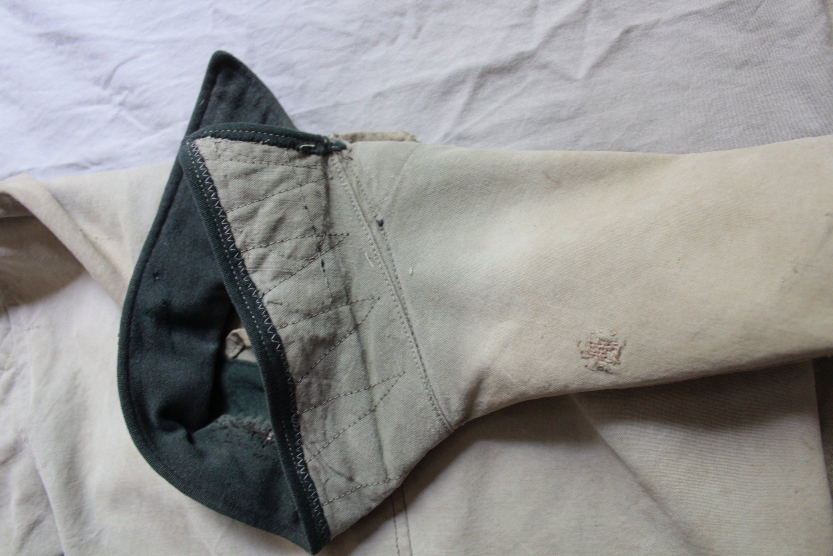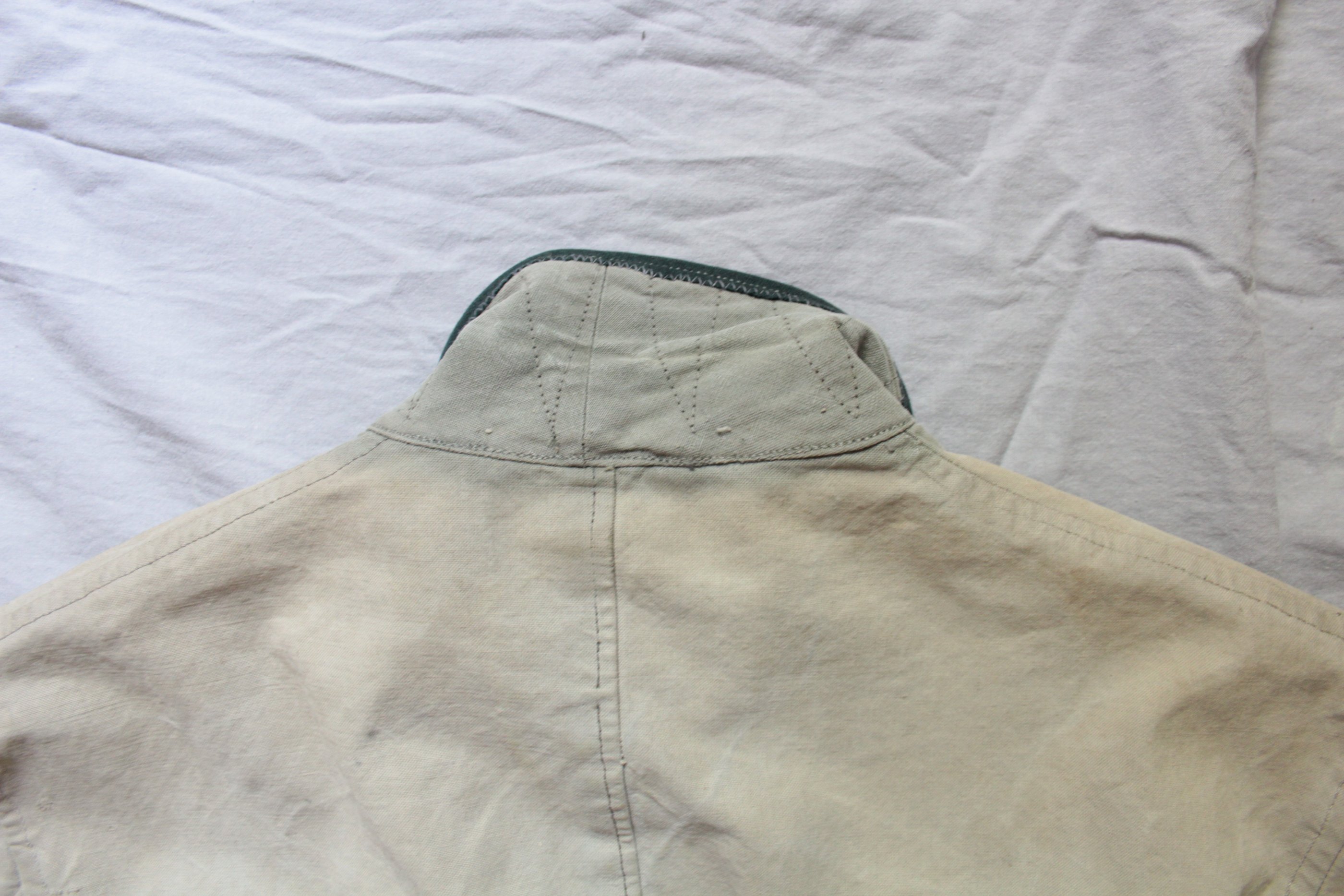 Jakk tehtud vene telkmantlist. Kasutatud kahte eri tooni palatkat. Tüüpiline idarinde rätsepatöö. Originaalis olid ees ainult rinnatasku nööbid.