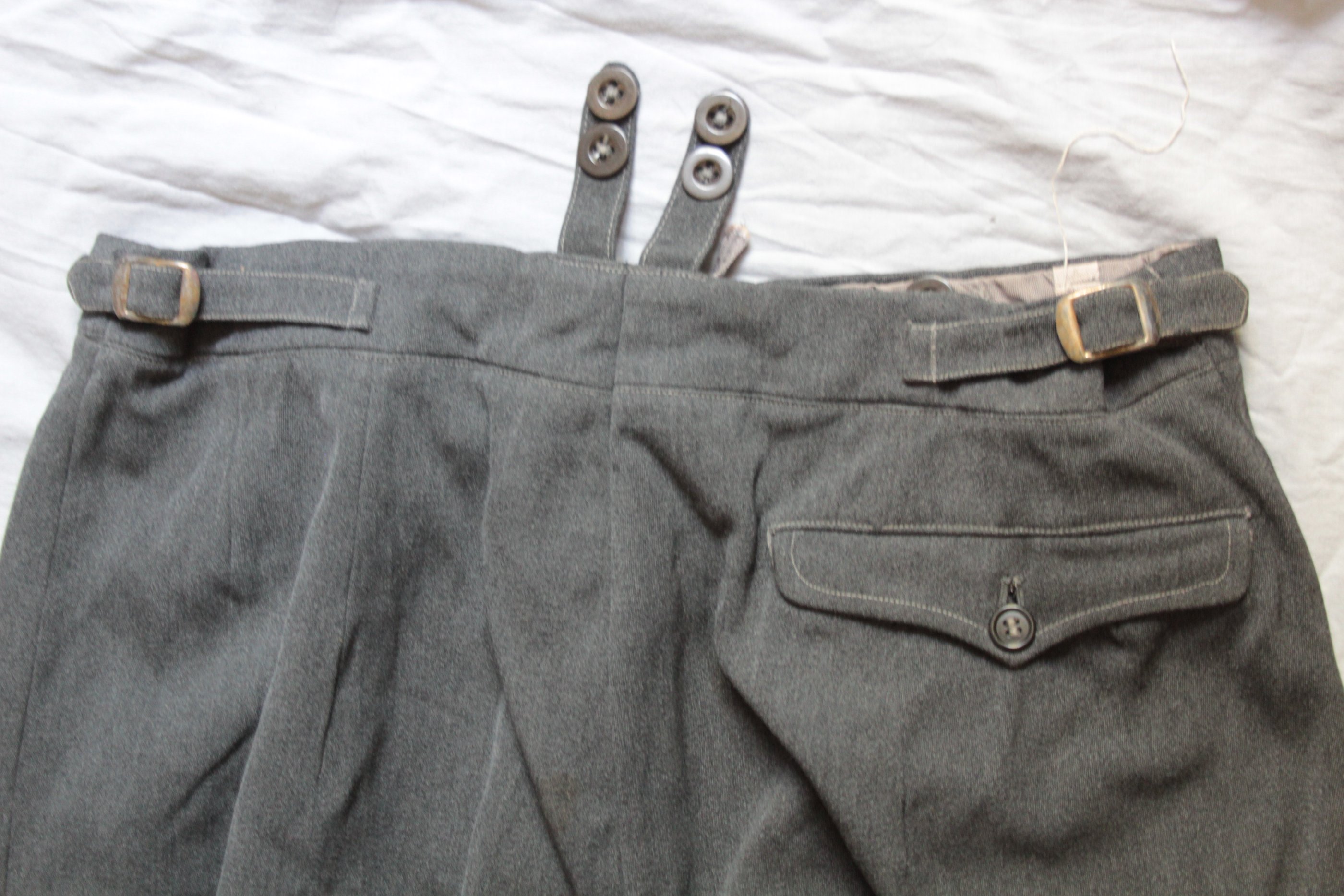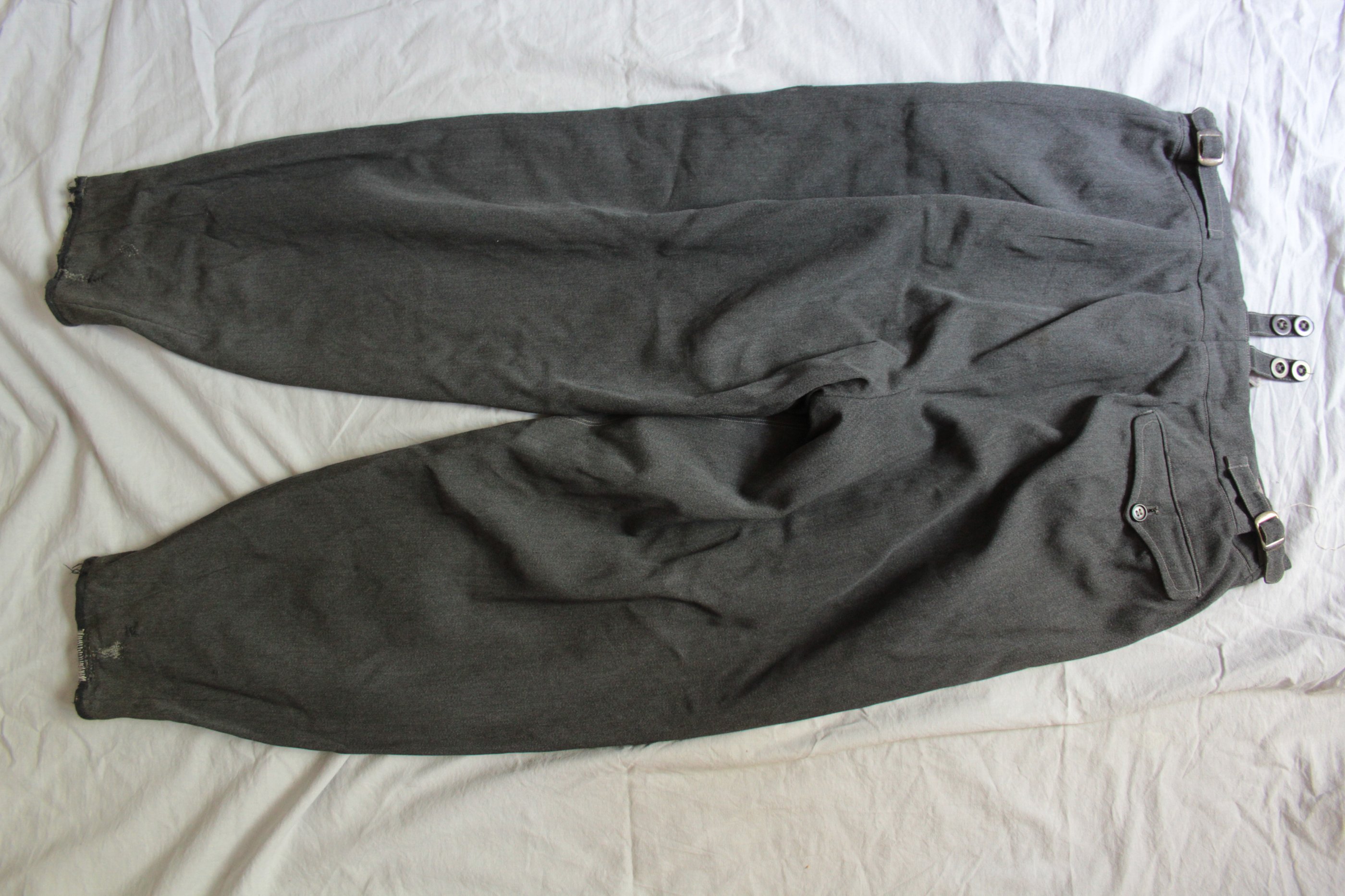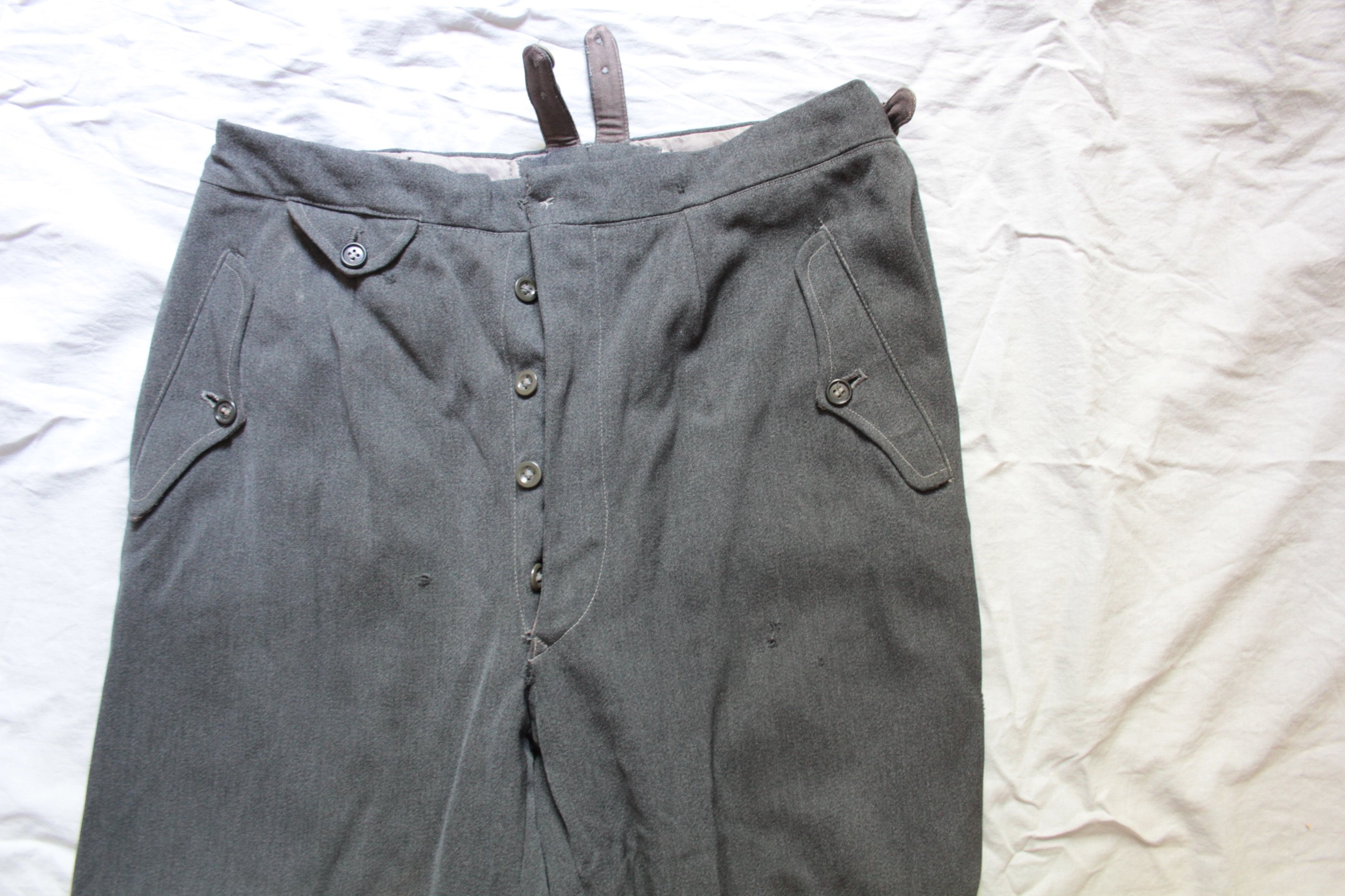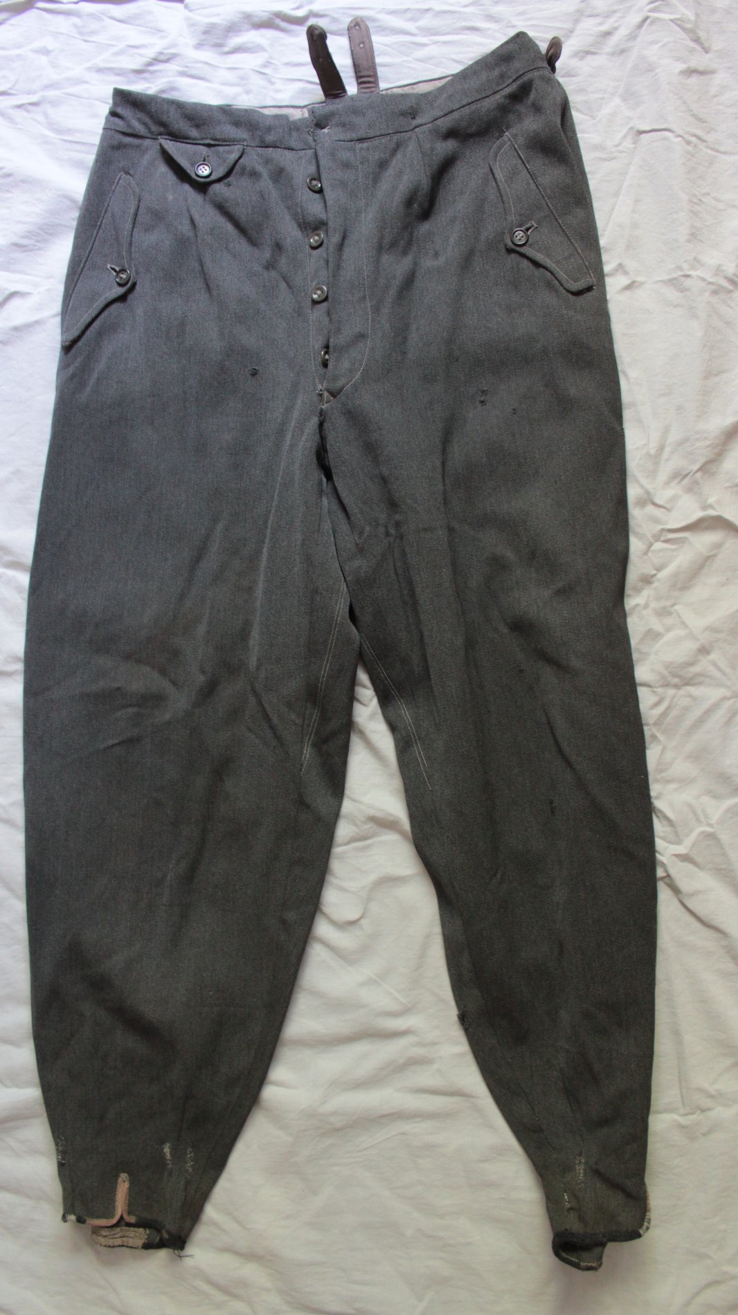 Kiilpüksid on rätsepatöö aga küljes on pikkade aluspükste trukiga hoidjad mis ka vabrikupükstel olemas. Hallist kangast olid tavaliselt ohvitseride või allohvitseride riidekraam. Aga lasi ka reakoosseis endale selliseid teha.