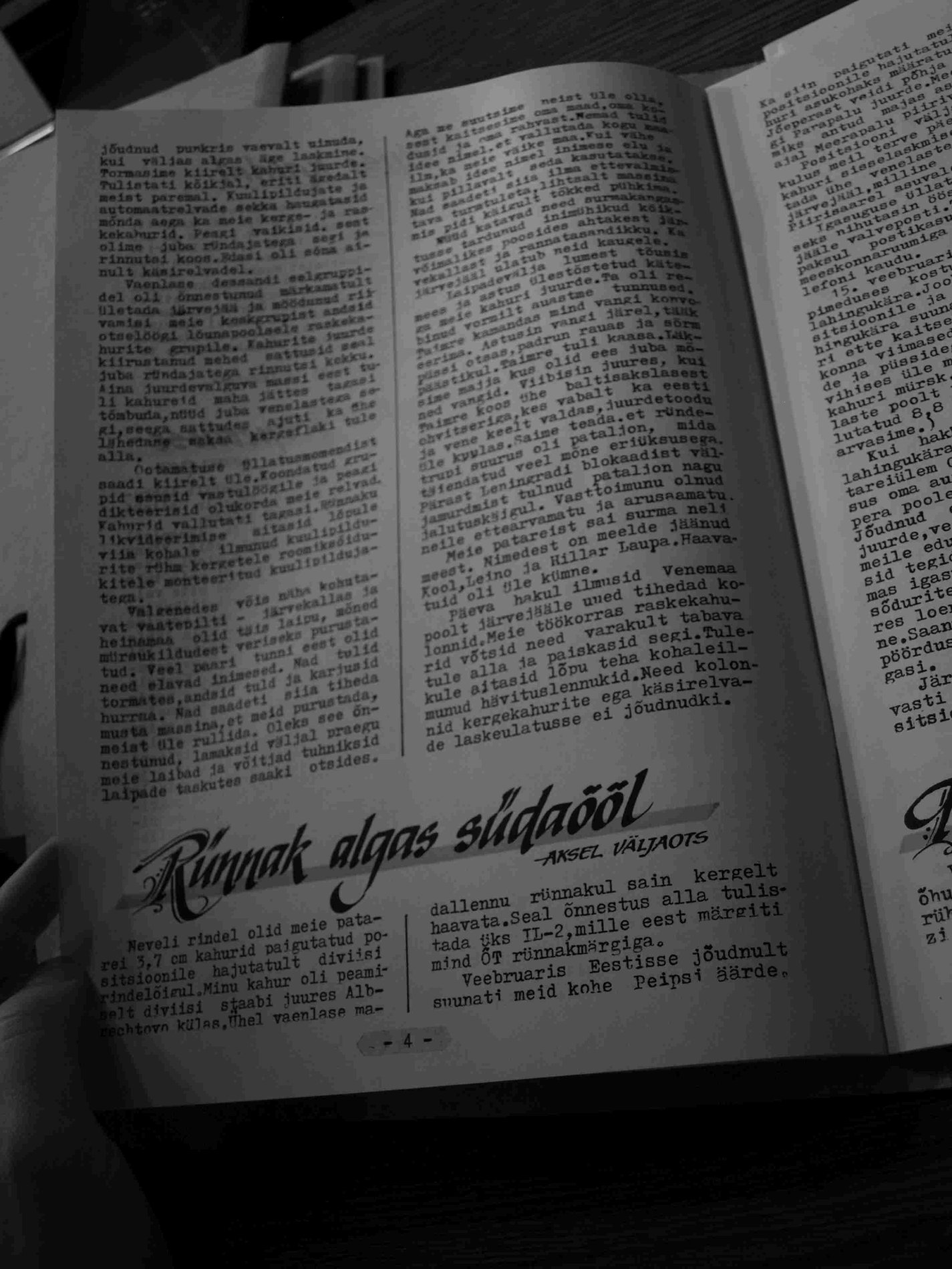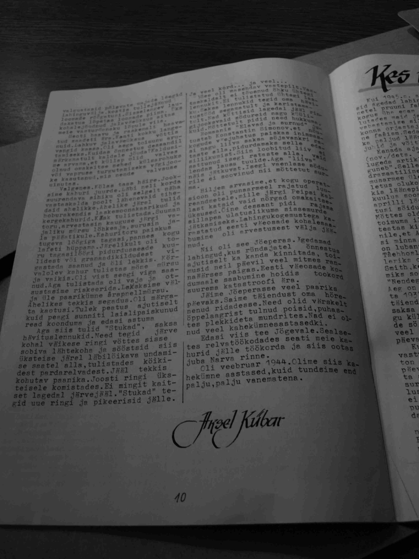 Kõigepealt Aksel Kübar 1. patareist (Võitluse Teedel. 1993, nr 1)