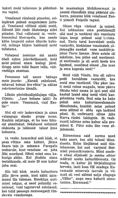 Evald Tomsoni mälestused (Vaba Eestlane. 23.02.1984). Päevane rünnak enne öist rünnakut on paraku siiski fantaasia/vilets mälu.