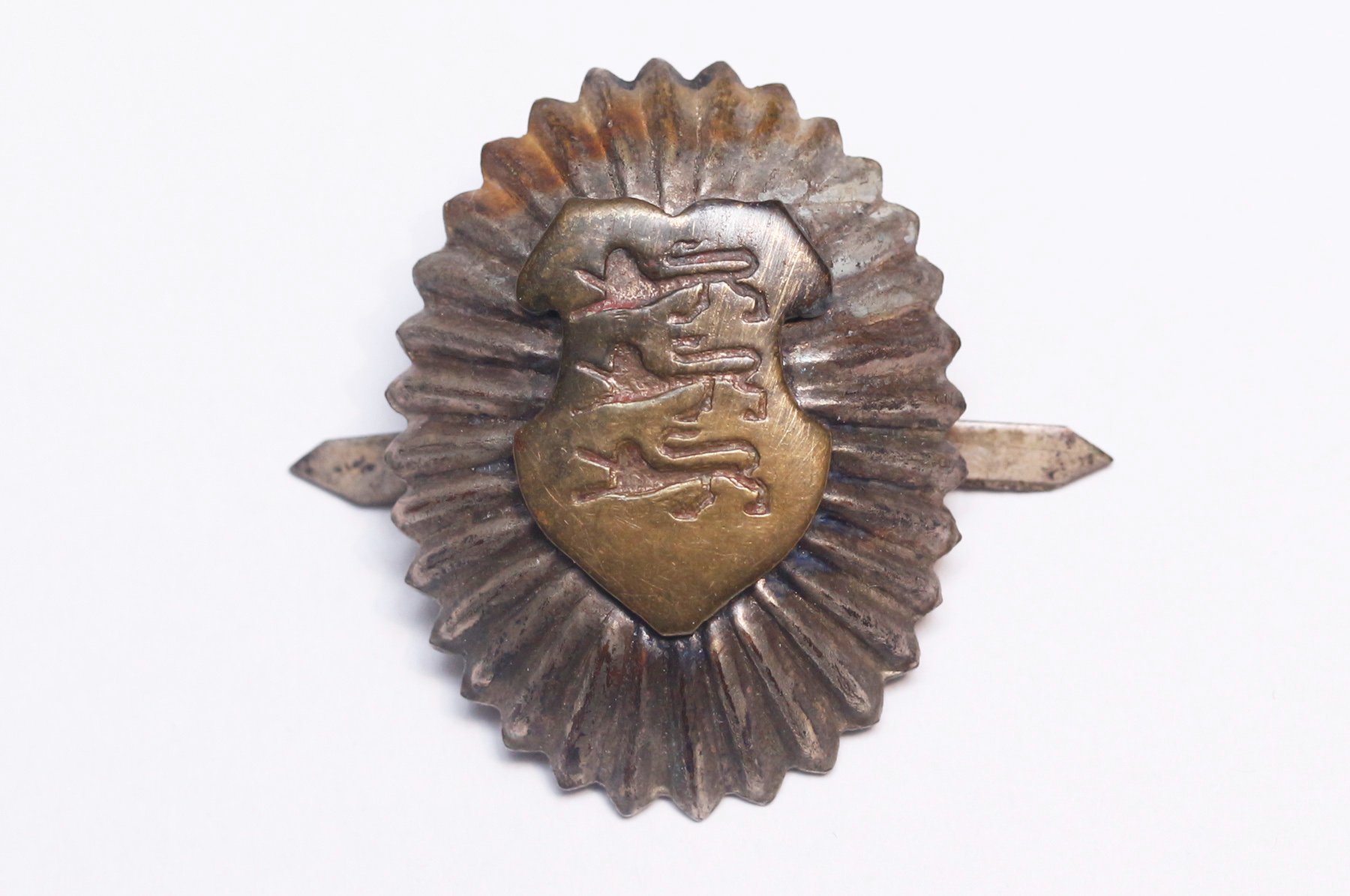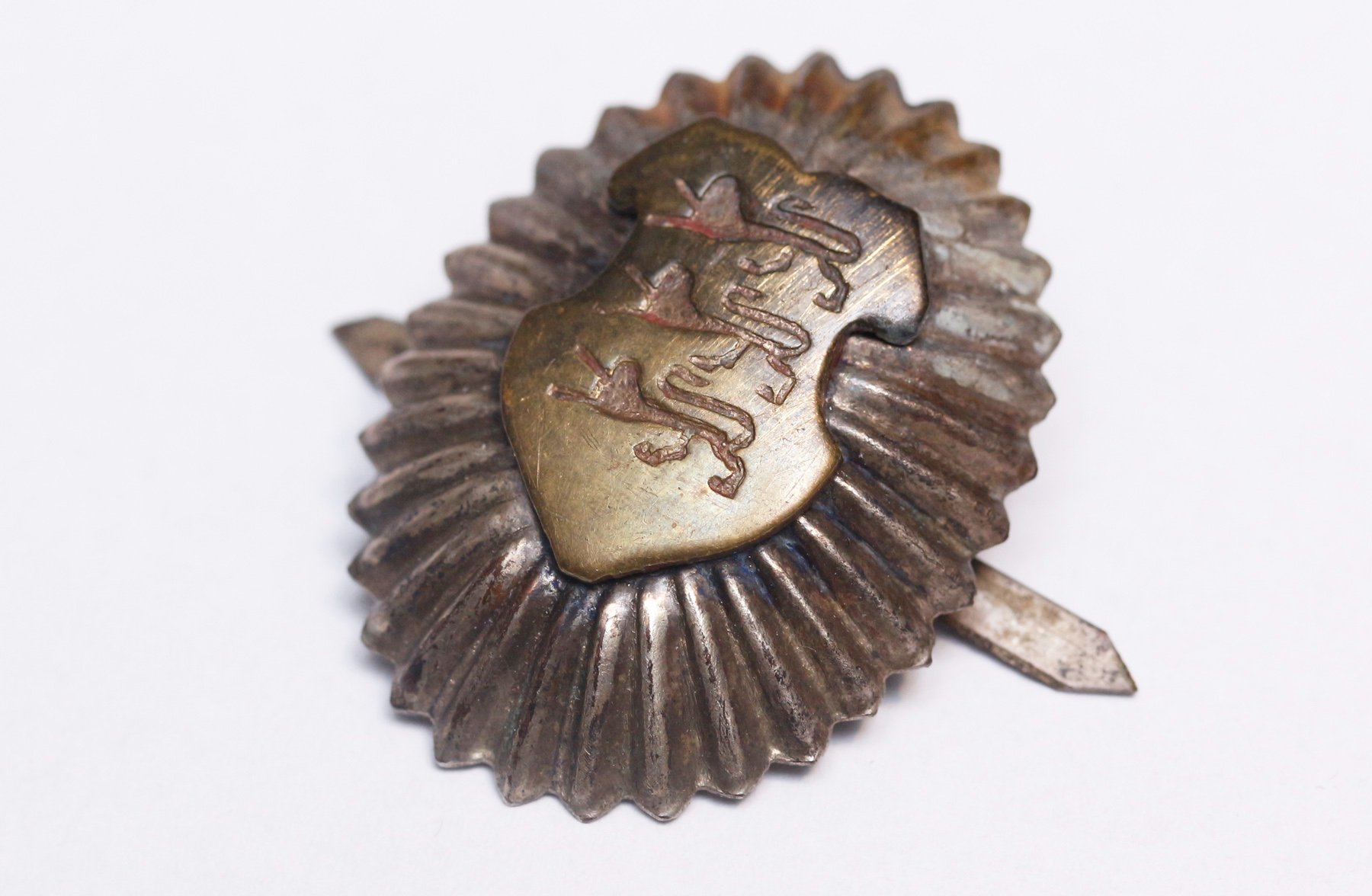 Ennesõjaaegne vangivalvuri mütsimärk. Kindlasti oli neil oma vormiriietus aga kas oli peale mütsimärgi ka mingeid muid eraldusmärke?