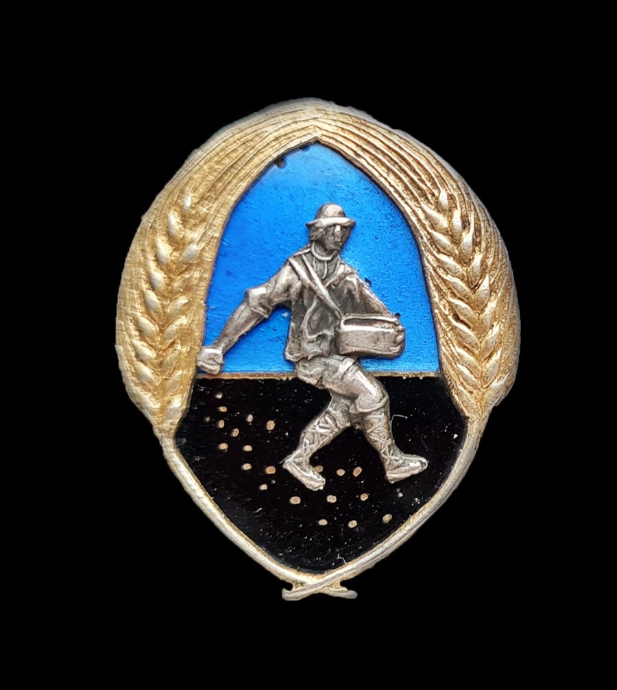 Ülemine - haridusseltsi või haridusega seotud. Sama motiiv Riiia Eesti Hariduse Abistamise Seltsi märgil - mees tarkuseteri külvamas.