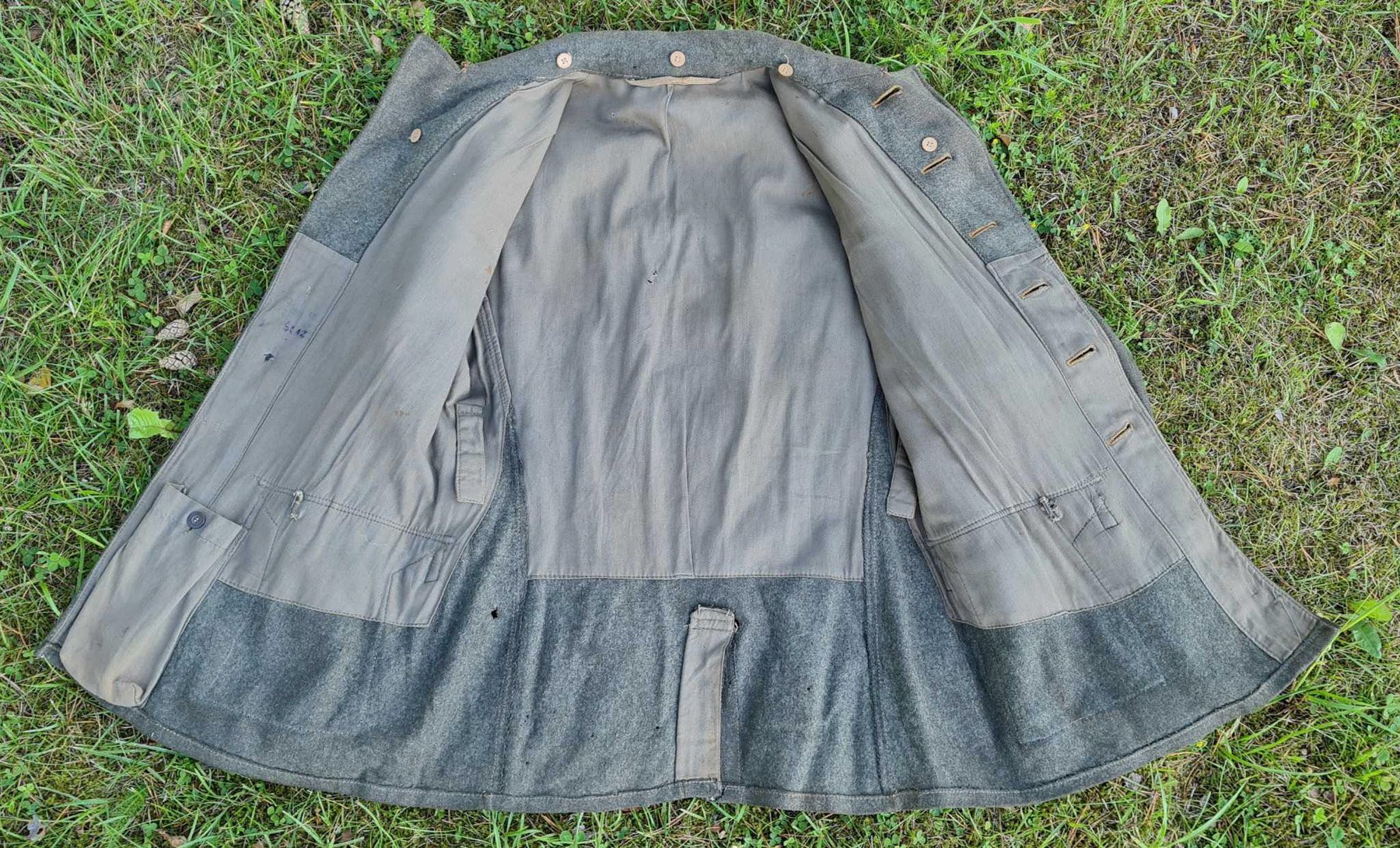 Esmapilgul nagu tavaline Wehrmacht'i m42 aga vöörihma toetuskonksude aukude arv ja asetus on teistmoodi kõigist senini nähtud villasest riidest toodetud WH vormikuubedest. Kui tavaliselt on auke 4x3 ning paiknevad need vormikuue ees ja taga siis sellel eksemplaril on 2x3 auku ja on paigutatud külgedele. Selliselt on need augud kalasabamuster kangast drillich kuubedel aga villasel kuuel ei ole sellist asja veel nähtud. Parema hõlma sees, sidemepaki kohal on mõõtude templite juures ka Stettini riidedepoo tempel aastast 1942. Huvitav on ka vormikuue vooder - kui enamikel m42 kuubedest on selleks kasutatud kunstsiidi siis sellel on vooder puuvillasest kangast nagu oli m36, m40 ja m41 kuubedel. Võimalik, et tehti mingi väike partii ekslikult kalasabamuster kanga kuubede lõigete järgi.