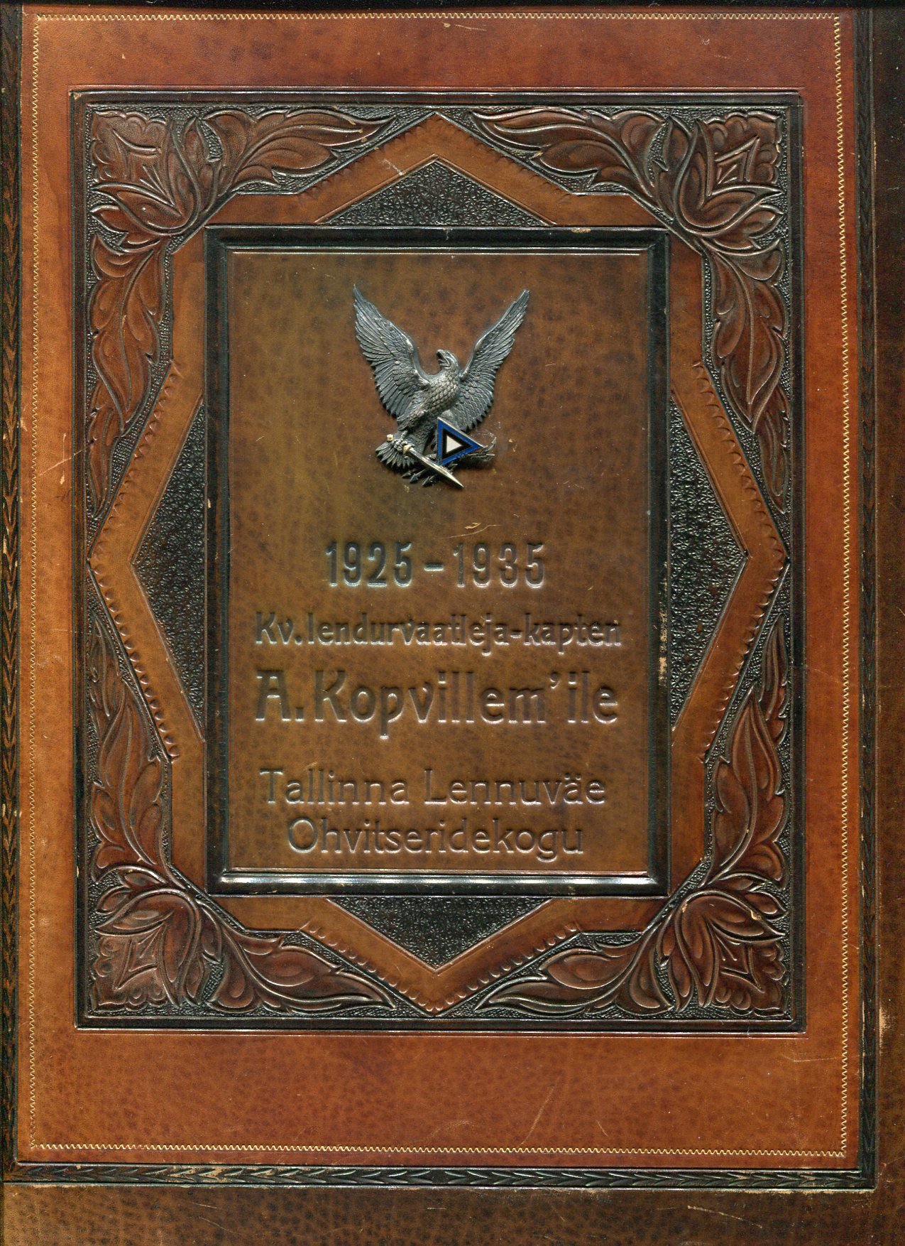 Kv. lendurvaatleja-kapten A.Kopvillemile Tallinna Lennuväe Ohvitseridekogu. 1925--1935. Kingituseks ilus suur dokumentide mapp koos tänukirjaga. Võibolla keegi oskab veel selle mehe, Tema elu ja saatuse kohta öelda.