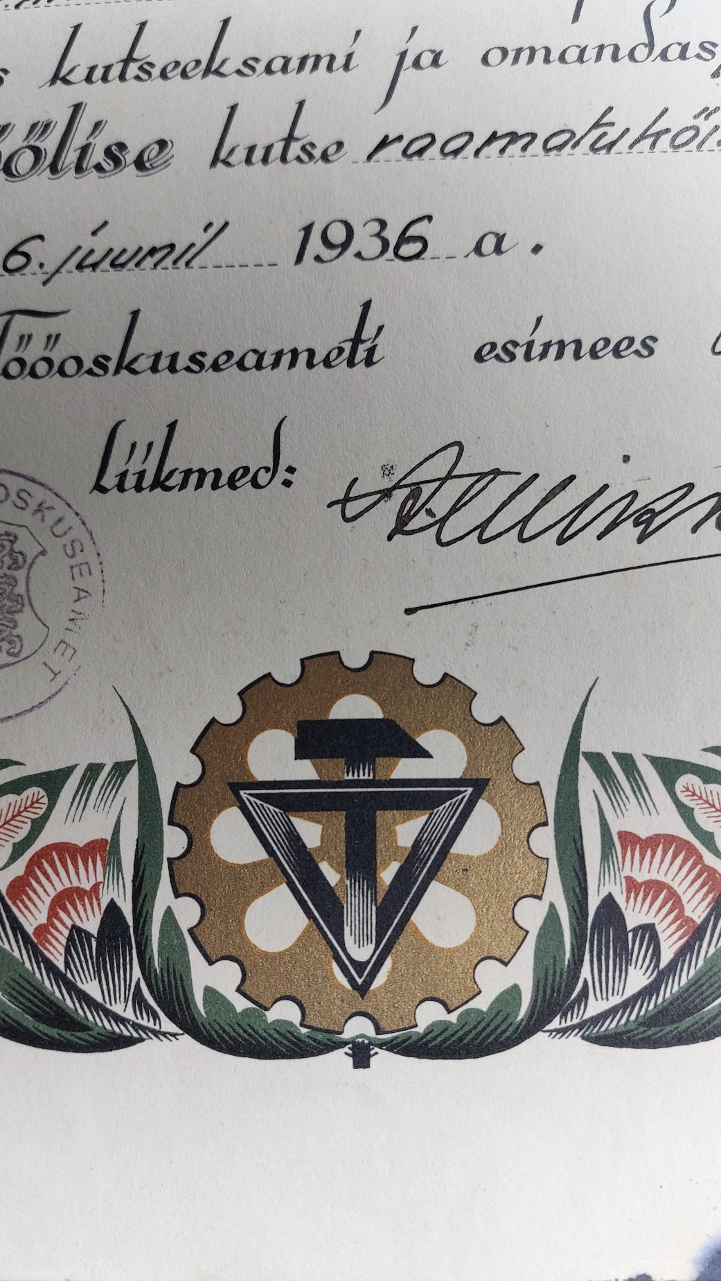 Lisaks paar pilti diplomist ,kus on kasutatud hammasratta ja kolmnurga kujundeid kutsetunnistuse või kursuse tunnistusel.