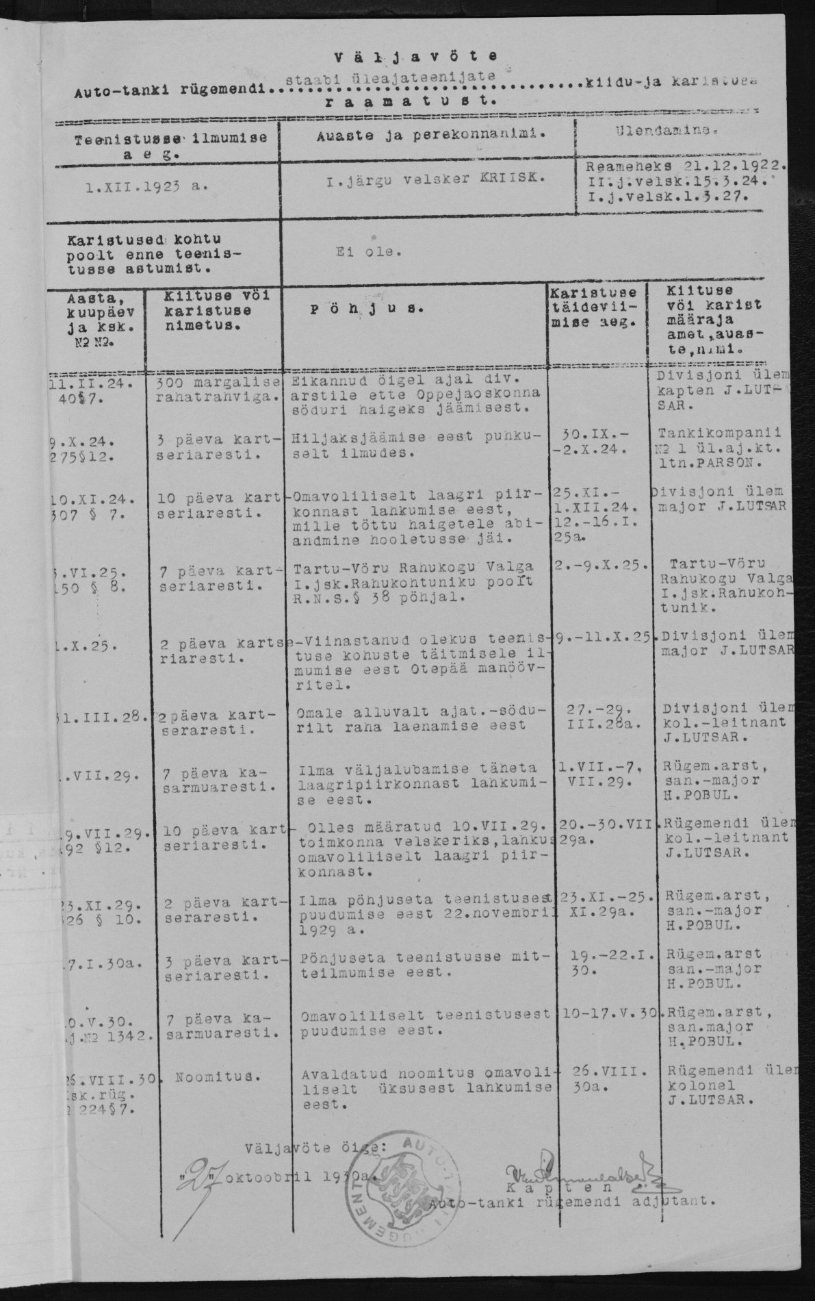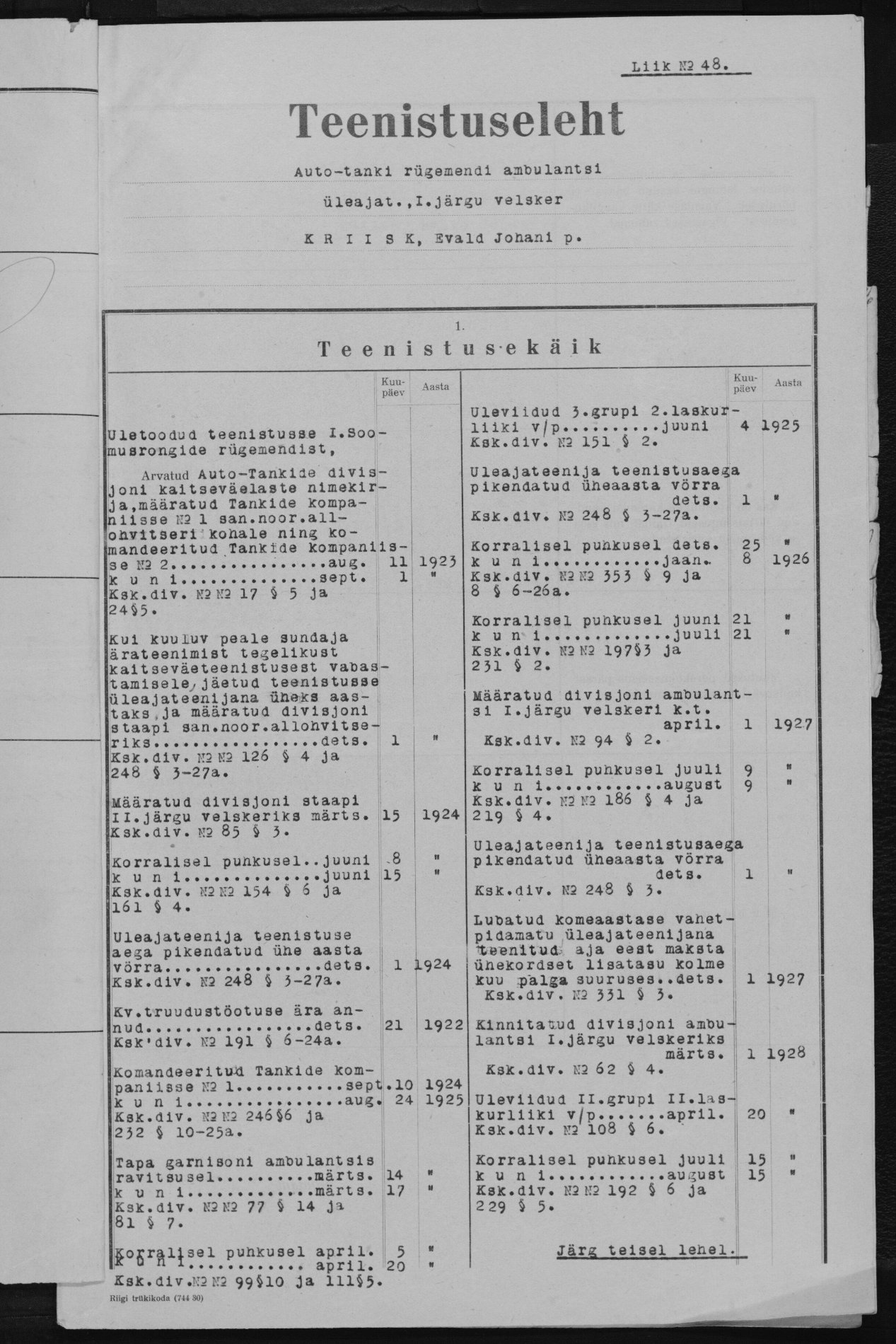 Re: Auto-Tanki Divisjoni 1920 aasta käekett.