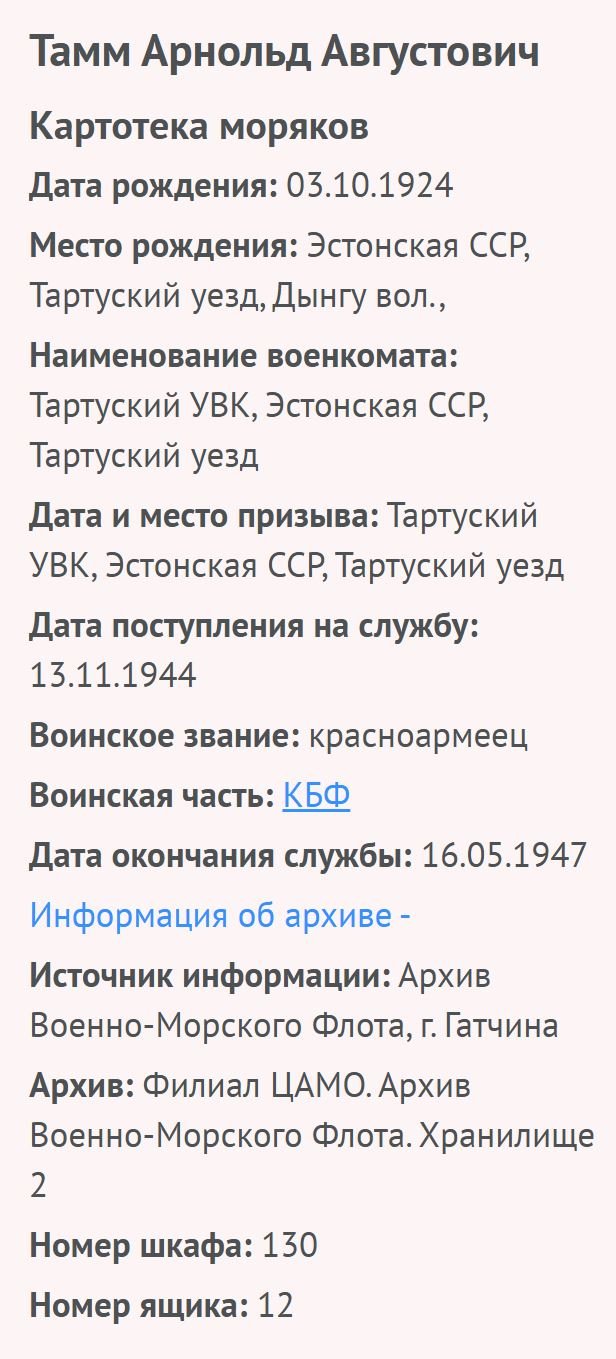 Arnold Tamm sündinud 5.november 1921 Kapsta küla, Tartumaa. Isa nimi on August Tamm