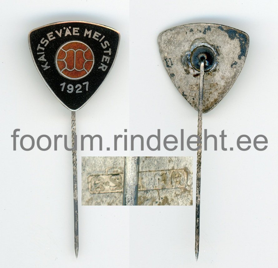 Kaitseväe meistrimärgid pallimängudes 1927 märk, valmistajaks Roman Sildma.