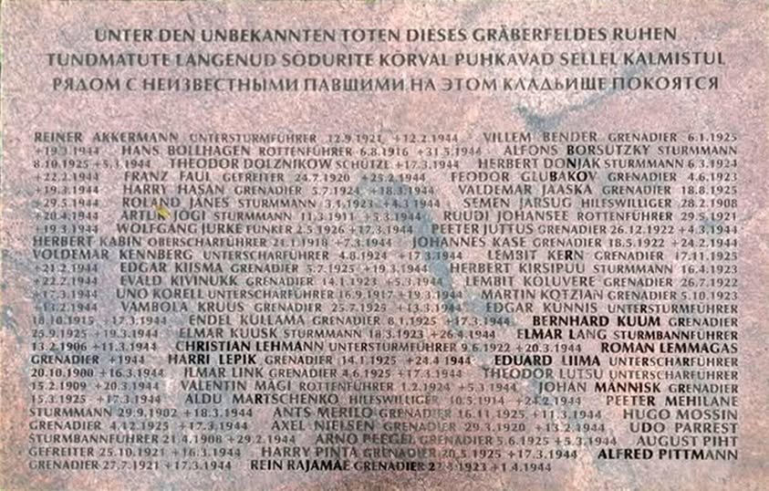 MOSSIN, Hugo, m, s. 04.12.1925 Võrumaa, Orava v. Saksa sõjaväes, sõdur, langes lahingus 11. 05.1944, maetud Narva kangelaskalmistule. [ERA.R-165.1.123; H.P.]