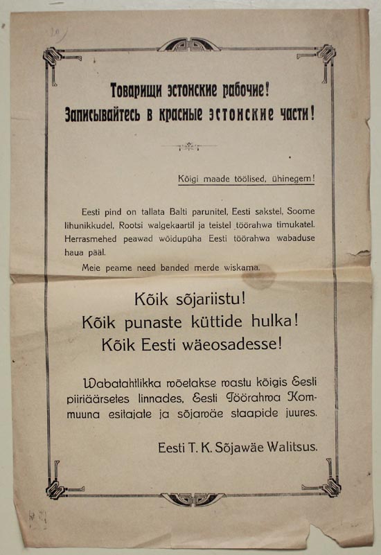 Kaks Vabadussõja aegset värbamisplakatit Eesti Sõjamuuseumist ...
