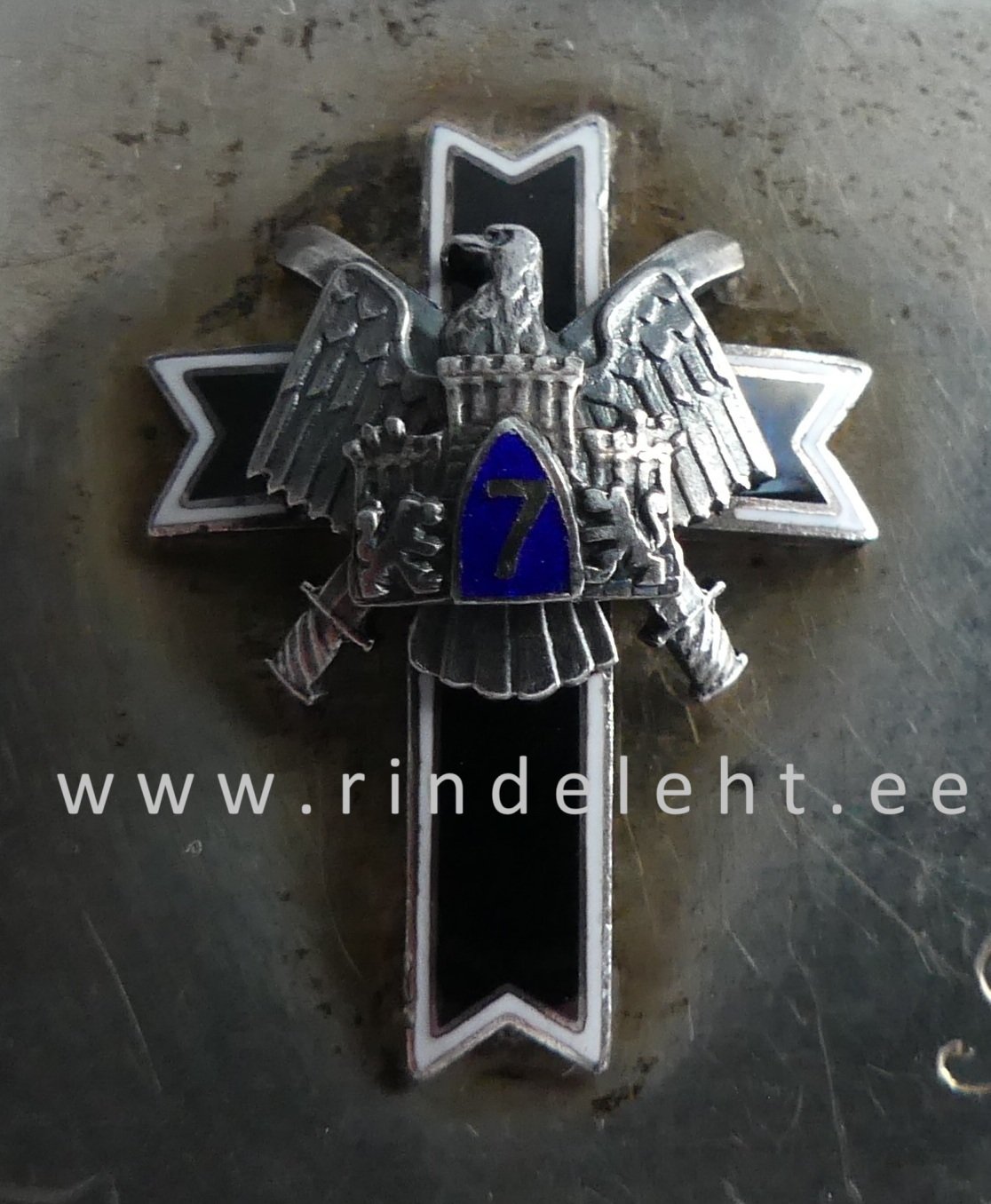 Sellist 7. JR miniatuuri ei ole rohkem kohanud kui sellel Sinu plaadil. Arvan, et rinnas kantavale miniatuurile tehti pärg taha, et märgike natuke toekam välja näeks. Lisan pildi oma EW sõjaväe rinnamärkide miniatuuridest. Ma tean, et kindlasti on olemas veel Scouts-rügemendi (1920-ndate variant), Kuperjanovi (1920-ndate variant), Auto-tanki rügemendi ja Merekindluste rinnamärkide miniatuurid. Võimalik ja üsna tõenäoline, et on olemas ka miniatuurid mitmetest teistest sõjaväe rinnamärkidest aga mina ei ole neid veerandsaja aasta jooksul veel näinud. Näiteks 3., 5., 6. ja 10. ÜJP, Vahipataljon, Pioneeripataljon, 4. ja 5. suurtükiväegrupp jne.
