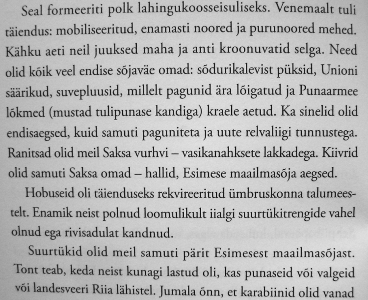 Ben kirjutas:kas Juhan Peegli "Ma langesin esimesel sõjasuvel" miskis kohas ei mainita, et Venemaal valmistasid probleeme veidra lõikega vorm ja Unioni saapad ? Mul pole seda raamatut kahjuks küll käepärast, muidu vaataks ise.