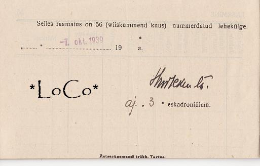 Seersandina Territoriaalkorpuses. Ratsaväe saaparosetid ja trafarett. Tema Noorkotka aegadest on säilinud 1930.a. väljaanne "Noorte kotkaste" põhimäärus. Samast kohast tuli ka teise mehe Ratsarügemendi laskekaustik, ilmselt eelmise mehe kamraad-kaasajateenija.