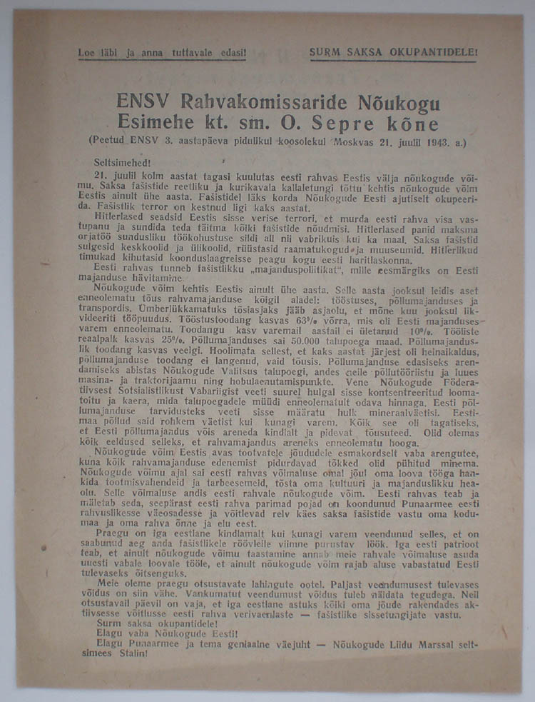 "Trankmanni raport/Sepre kõne" & "Stalini jutuajamine Hovardiga" müüdud!