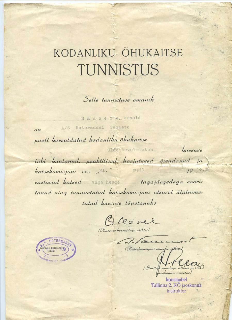 Müüa Kodanliku Õhukaitse tunnistus ...