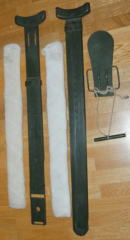 Krameri lahased (2 marlisidemesse ja vatti mähitud redel-süsteemi traatlahast) ja venituslahas jalale.