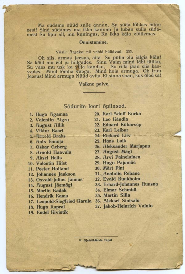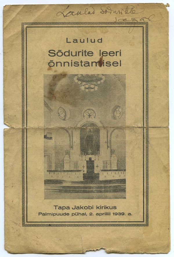 Polnud kunagi varem sellist laululehte näinud, mis trükitud sõdurite leeri õnnistamise jaoks.
