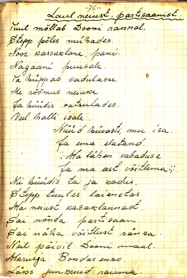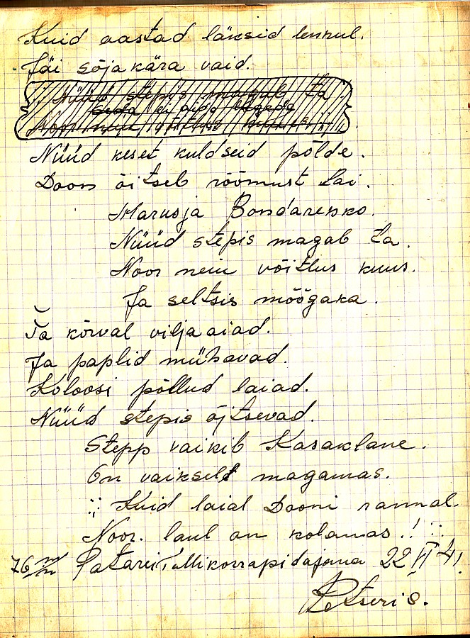 Laulust "Sõjamees waenuväljal" mul siis selline variant: