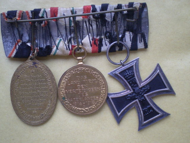 Kena lõunasaksa stiilis autasuliist - EK2(1914), Austria Tirooli kaitse medal ja Kyffhäuserbund-medal