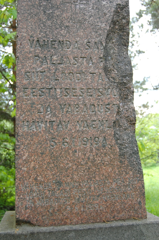 "Fragment ühest Kesk-Eesti vabadussambast 1950ndad/.../ Siin mingit põnevat lugu ei ole. Leidsin täna kodus ühte kappi koristades oma onu vana fotoalbumi. Nagu nüüd selgus jutuajamise käigus, oli onu (80) Vahastu kandis metskonnas metsakorraldajaks 1959. Vabal ajal siis kolas ümbruskonnas ringi ja tegi ka mõne ülesvõtte. Kus see sambatükk täpselt asus, seda ei mäletanud."