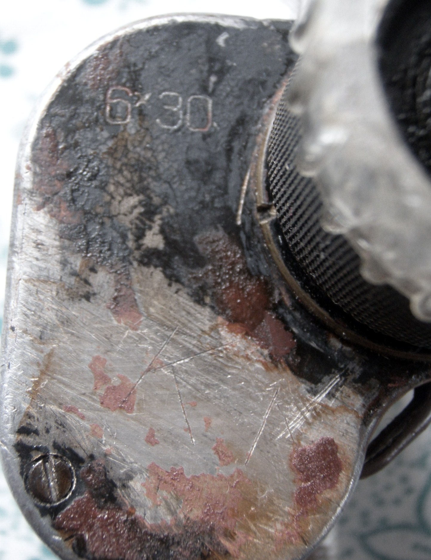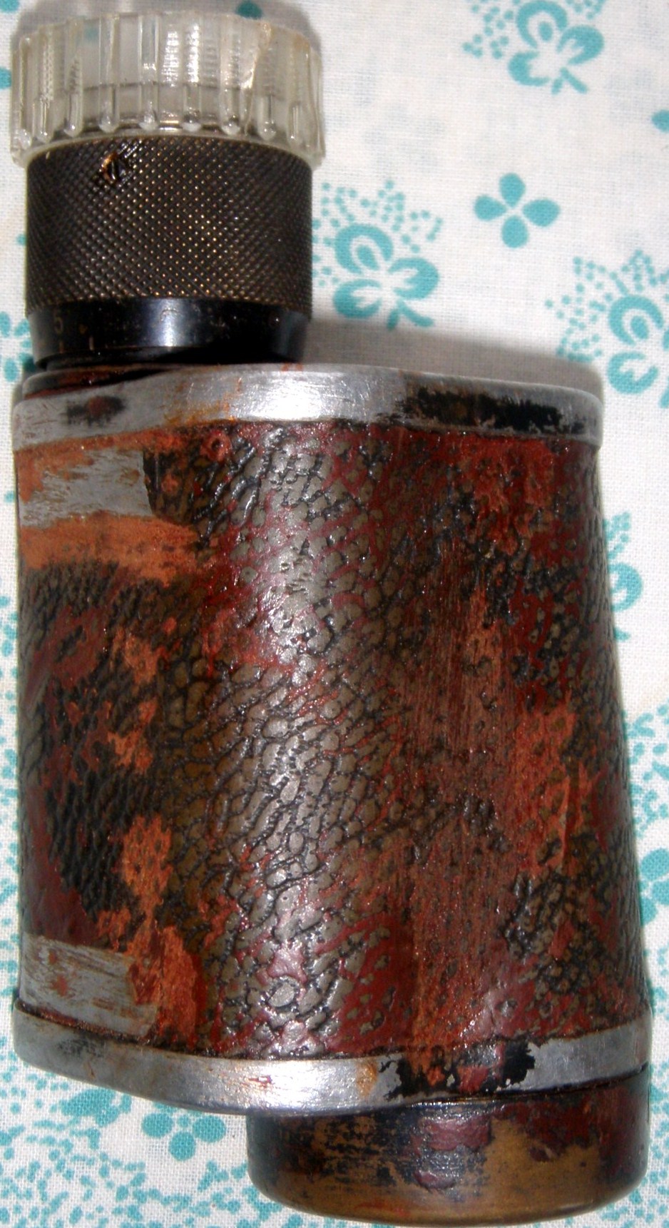 Polnud mõtet uut teemat teha ja loodan et autor ei pahanda, aga leidsin unustusehõlma vajunud pooliku binokli. Kaetud sellise kleepuva punase värviga ja värvi alt sain ainsa markeeringu zoomi ja läätse nr 6*30. Välimuse järgi ütleks et vene toodang, aga kas sõjaaegne või hilisem? Keegi kunagi kummiluti asemel sinna mugava plastikrõnga modinud. :lol: