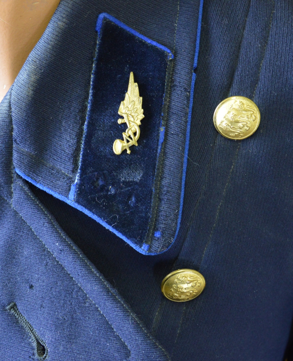 Postimaetniku väikesed kraekupud ja mütsikokard.