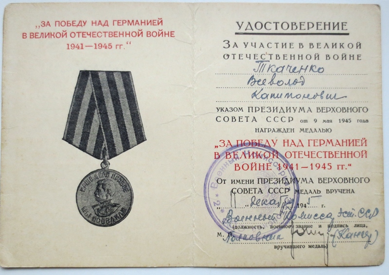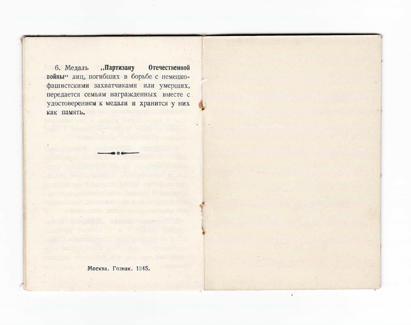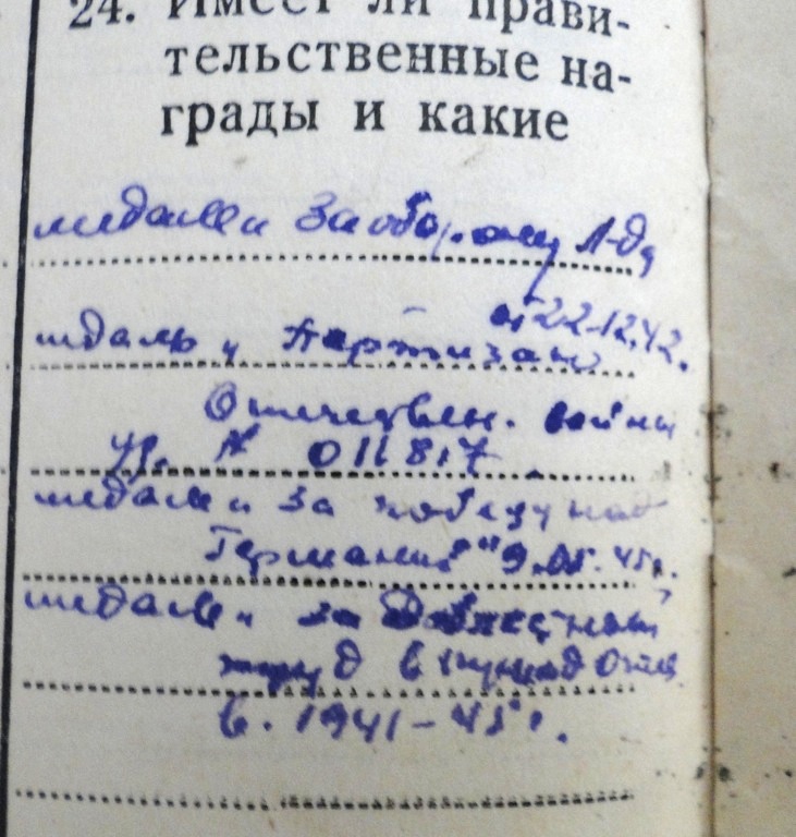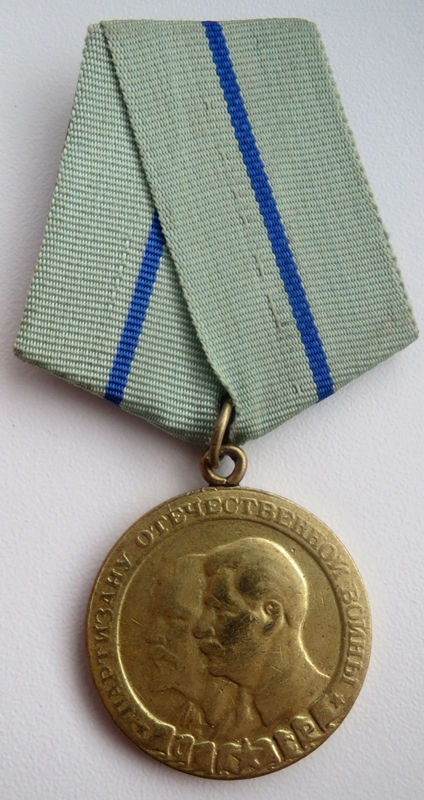 Kuna II klassi medalit, mis oleks meil siin välja antud ette näidata ei ole, siis seniks medal, millega on autasustaud Valgevene partisaniliikumisest osavõtja. Komplektis ka partisani tunnistus.
