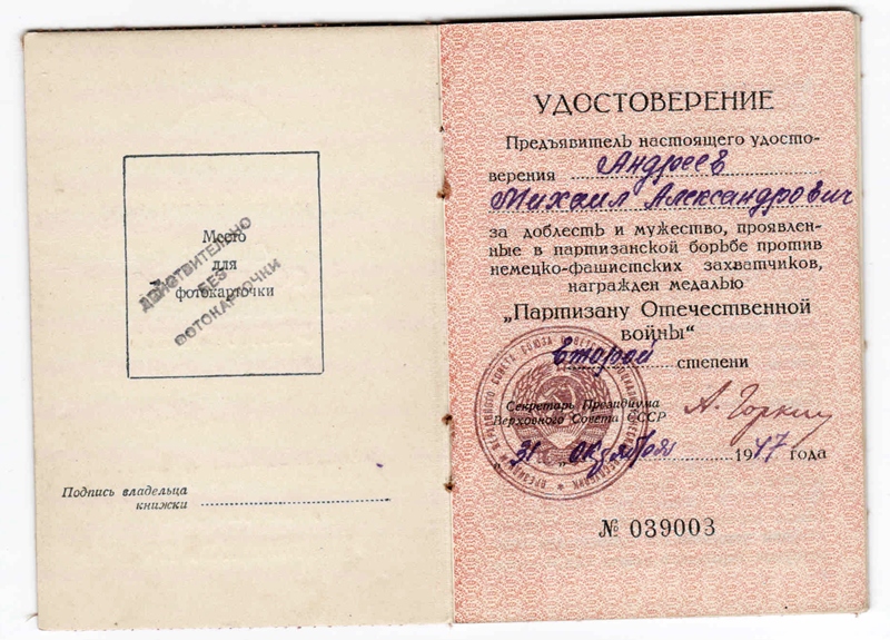 Lisaks tuli veel üks üllatavalt korralik dokument partisani II klassi medalile.
