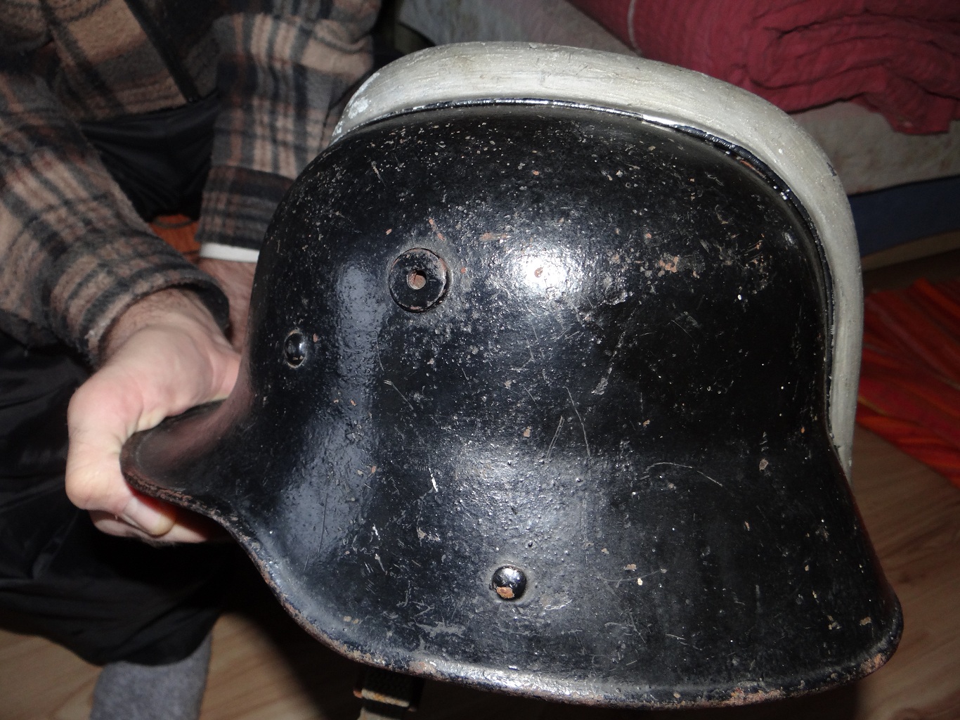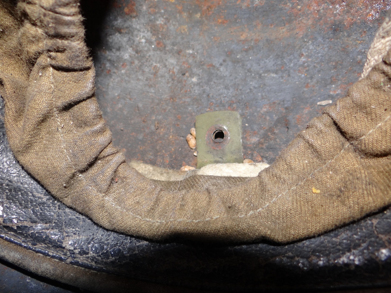 esimesel pildil olev võru küljes ülevalpool näha olev auku käis originaal koore ssh39 kiivri kinnitus neet ja neid auke on 3. tähendab siis et kogu kupatus on vöö, vooder on orikas ssh39 oma ju siis ka rihm.. kes restaureerib ss39 saaks siis siit harvaesineva sisu.