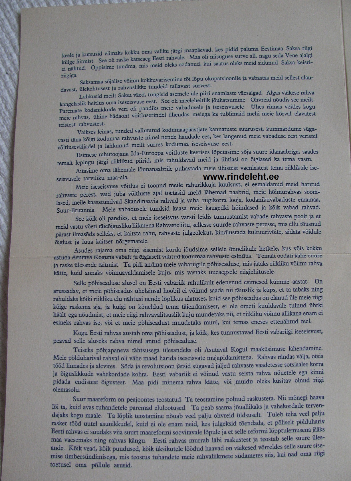 Panen lugemiseks üles Riigikogu 1928. a kõne, mis loeti ette EW 10 aastapäeva puhul üle Eesti erinevatel üritustel. Huvitav lugemine. Kõne tohtis avada alles 24. veebruaril. Lisaks on veel üks ümbrik juhistega.
